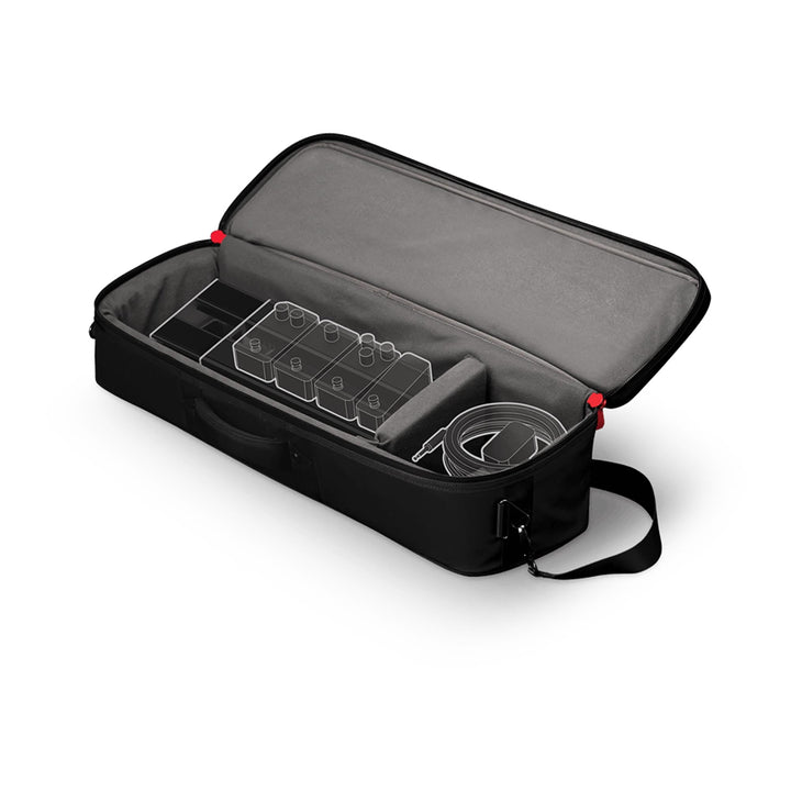 The Backline Pedalboard Transporter case adapts perfectly to the XPND Pedalboards and will fit most other similarly sized pedalboards. No matter the length or how often you modify your board, the case’s customizable partitions easily adjust to create a uniquely snug and secure fit. In addition to its sleek design and rugged construction, the Backline Pedalboard Transporter also features heavy-duty zippers and a reinforced shoulder strap—plus plenty of storage space for cables and accessories. Whether you’re a touring musician or a casual player, the Backline Pedalboard Transporter case is a must-have for your pedalboard.